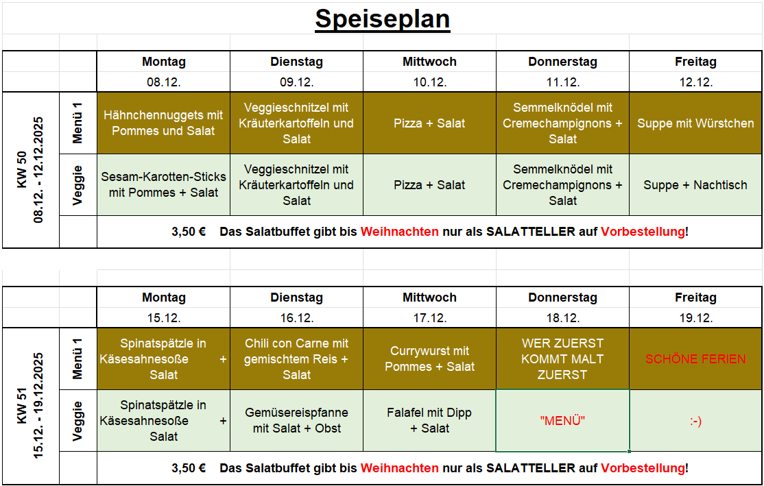 In diesem Fall oder auch bei Unterrichtsausfall, der schon einen Tag vorher bekannt ist, bitte bis spätestens um 7.30 unter folgender Telefonnummer 06253 / 930447 oder direkt in der Mensa das Essen abbestellen. Der Essenspreis wird dann nicht berechnet.