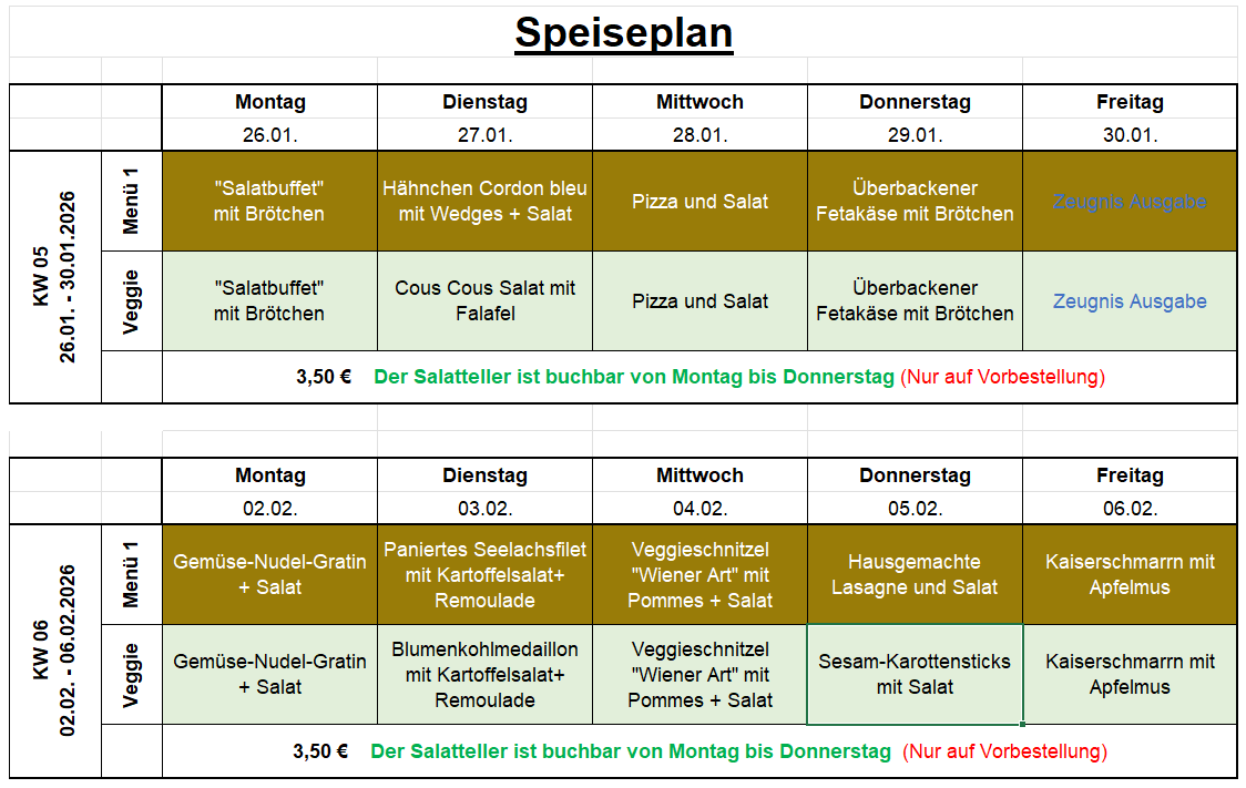In diesem Fall oder auch bei Unterrichtsausfall, der schon einen Tag vorher bekannt ist, bitte bis spätestens um 7.30 unter folgender Telefonnummer 06253 / 930447 oder direkt in der Mensa das Essen abbestellen. Der Essenspreis wird dann nicht berechnet.